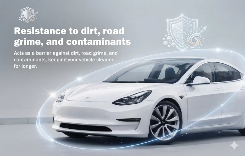 Acts as a barrier against dirt, road grime, and contaminants, keeping your vehicle cleaner for longer.